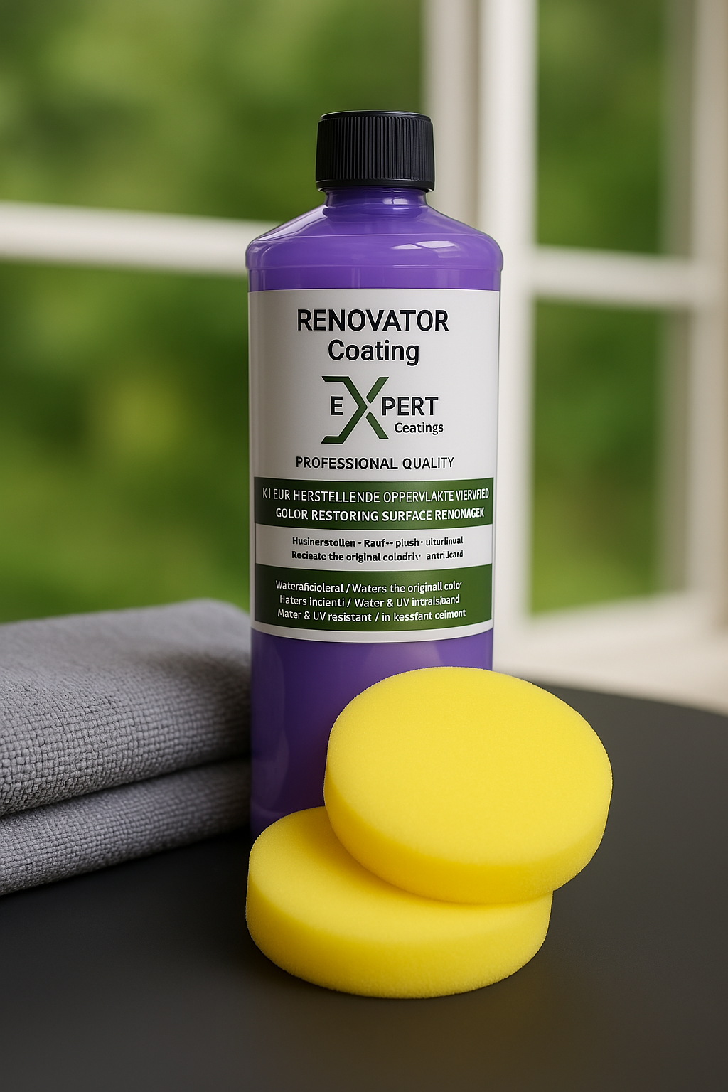 Onze producten worden steeds per fles geleverd met 2 sponzen en 2 microvezel doeken.